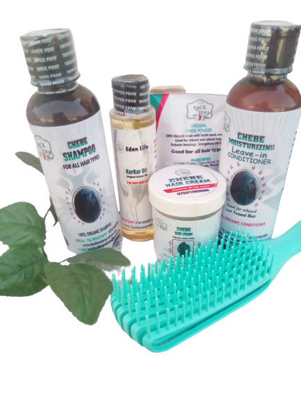 This product helps to reduce breakage and grow your hair faster and better. This set contains; Shampoo, conditioner, hair mask powder, karkar oil, and hair cream