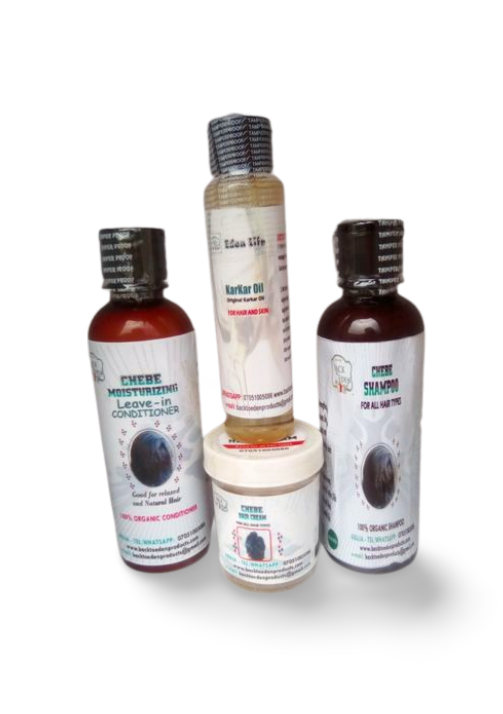 It Contains 250mls shampoo, conditioner, 100g hair cream and karkar oil